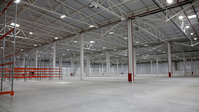 В складах предусмотрены бетонные полы с антипылевым покрытием, приточно-вытяжная вентиляция, система кондиционирования. За пожарную безопасность отвечает спринклерная система пожаротушения. Под мелкотоннажный транспорт возможно оборудование пандусом. Колонны расположены на значительном удалении друг от друга, поэтому не возникнет проблем с размещением стеллажей, проведением погрузочно-разгрузочных работ на складской технике.